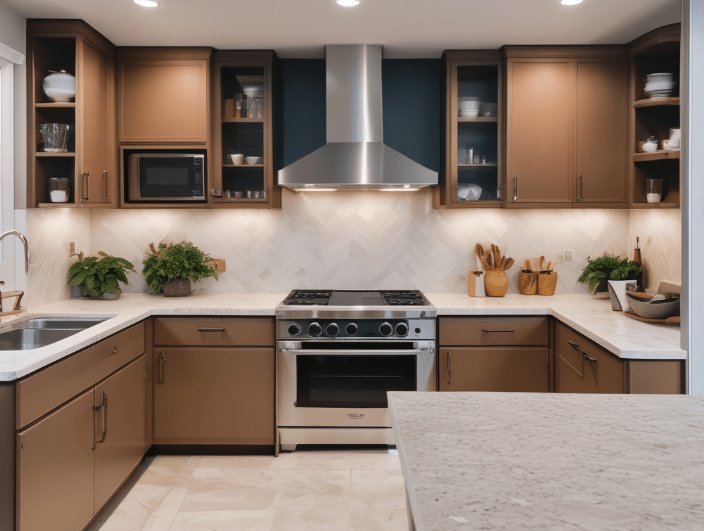 - Backsplash: Install the backsplash after the countertops, ensuring it is aligned and sealed properly.