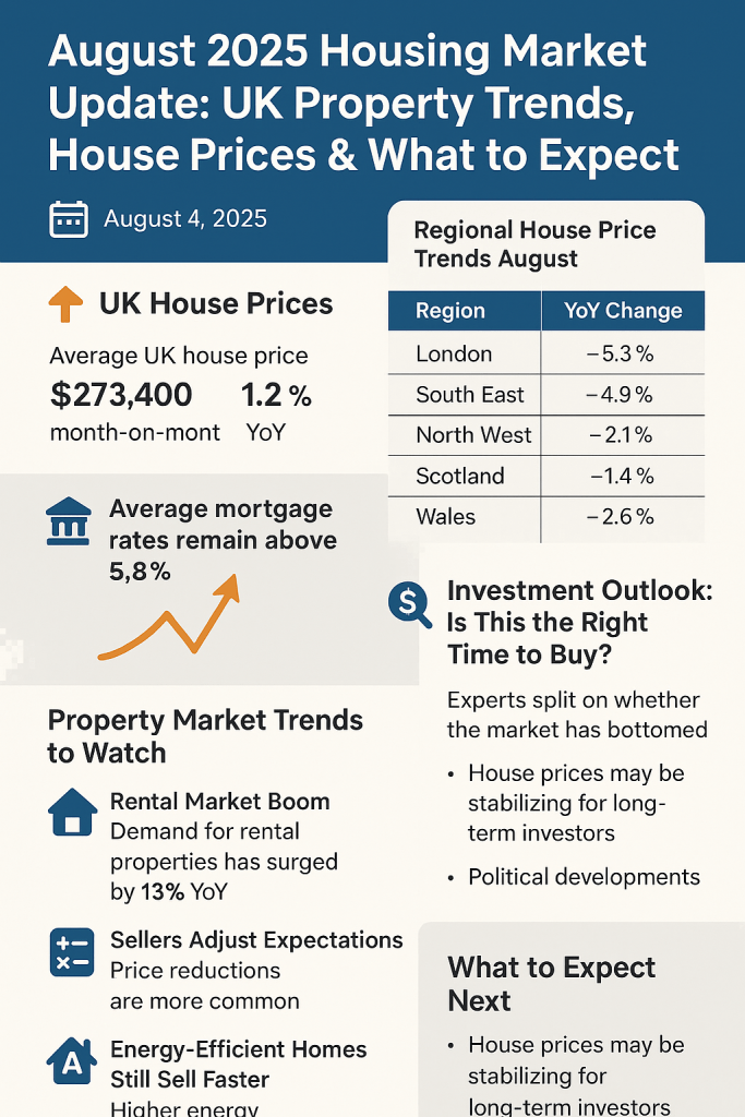 The UK property market in August 2025 is defined by caution, recalibration, and resilience. While headlines focus on falling prices, savvy buyers and long-term investors are quietly preparing to re-enter. For sellers and agents, pricing realistically and focusing on energy efficiency remains crucial.